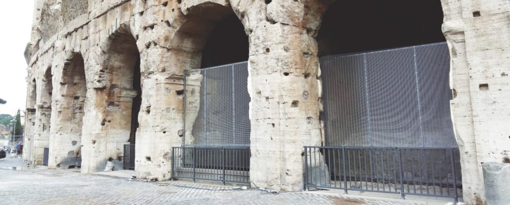Os 69 arcos da primeira Ordem do Coliseu têm, desde 2014, uma proteção adequada à importância e ao pleno respeito que este edifício símbolo de Roma merece aos olhos do mundo graças ao Contrato Gonzato. 1.200 kg de ferro para cada um dos portões. Um refinado sistema de apego ao travertino milenar para não distorcer as estratificações históricas. Também um trabalho de engenharia e artesanato a serviço das novas normas de segurança. Motorizações, aberturas de pânico, dobradiças especiais de metalização e revestimento em pó para tornar os produtos testados pelo tempo.